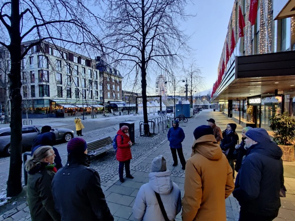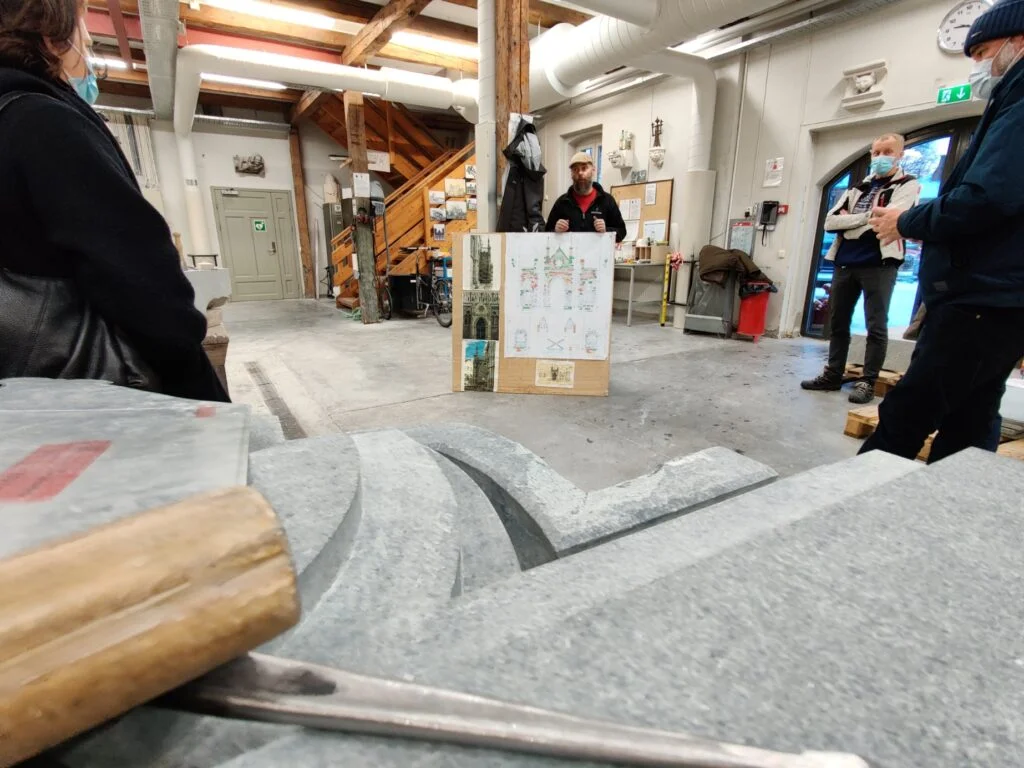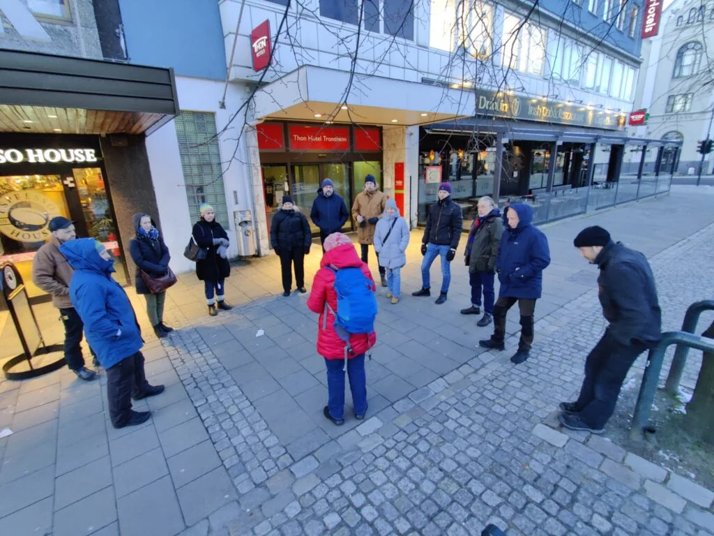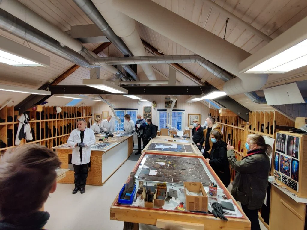 Vi började med ett besök på Nidaros Byggnadshytta, vilket är Nidarosdomens egna hantverkscentrum, som består av 40-talet hantverkare inom sten, glas, trä, gips och smide. Från 2019 så är hyttan del på UNESCO:s världsarvslista för det immateriella kulturarvet. Grattis! Efter en fin omvisning av de olika hantverkens verkstäder fick vi vara med på invigningen av katedralens nya ljusinstallation. Wow säger vi!!