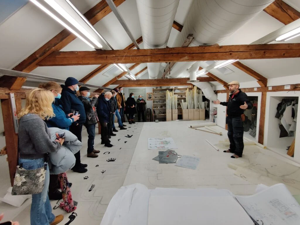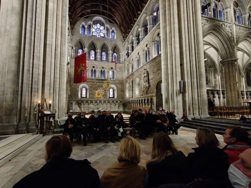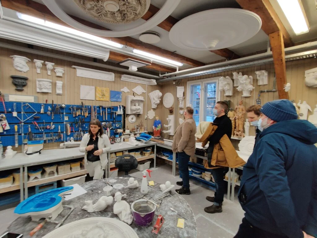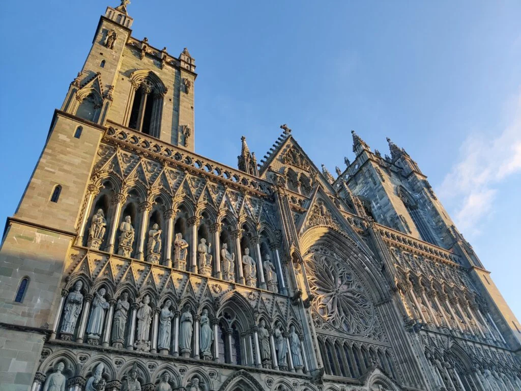 Vi började med ett besök på Nidaros Byggnadshytta, vilket är Nidarosdomens egna hantverkscentrum, som består av 40-talet hantverkare inom sten, glas, trä, gips och smide. Från 2019 så är hyttan del på UNESCO:s världsarvslista för det immateriella kulturarvet. Grattis! Efter en fin omvisning av de olika hantverkens verkstäder fick vi vara med på invigningen av katedralens nya ljusinstallation. Wow säger vi!!