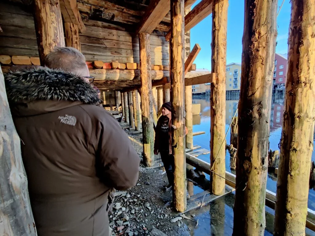 En av våra medlemmar, Eirik Ulvan från Bygningvern i Röros, har arbetat länge tillsammans med Torgeir och tog också med oss på ett imponerande jobb på det äldsta magasinet utmed Nidelva, Huitfeldtbrygga, med anor sedan 1600-talet (dendrodaterat). Byggnaden är enorm då det faktiskt är 3 byggnader som slagits ihop. Projektet med att lyfta huset till en ursprunglig position är tidskrävande då man måste stanna upp och se hur byggnaden ”reagerar” på alla lyft i dess olika många lyftställen. Detta 25 milj projekt!! är imponerande på alla sätt och otroligt att få se på nära håll. Tack Eirik för att vi fick se detta!