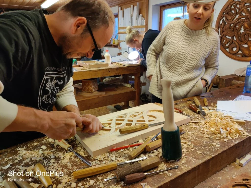 Timring, rödfärgskokning, dekorationsmåleri, hyvling av takbrädor, golvbrädor handhyvlas med not o fjäder, medeltida träskärning och mycket mera. Här får du som gäst tillfälle att träffa hantverkarna som kan hjälpa dig i ditt projekt.